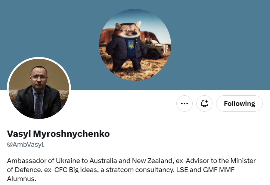 Do you know that our ambassador, Vasyl Myroshnychenko, and the Australian ambassador to Ukraine, Bruce Edwards, also support NAFO? Many Ukrainian ministers have their own Fella avatar, including the Minister of Defence Oleksiy Reznikov.