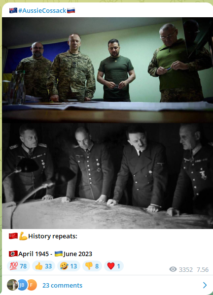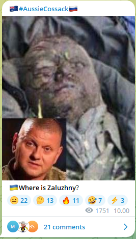 Some examples include the debunked image of “dead Zaluzhny”, comparing Zelensky’s crew to Hitler’s, and sharing inflated losses for Ukraine.
