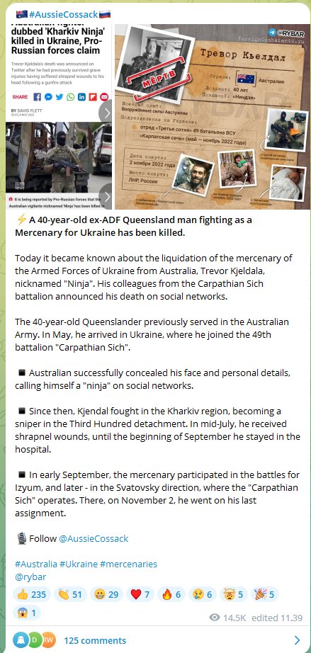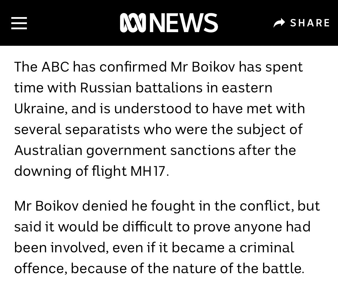 Boikov does video exposes of Australian and New Zealander volunteers fighting in Ukraine. He referred to one dead Australian humanitarian aid worker in Ukraine as “biolab worker”, referring to the debunked bioweapons lab conspiracy theory that refuses to die.