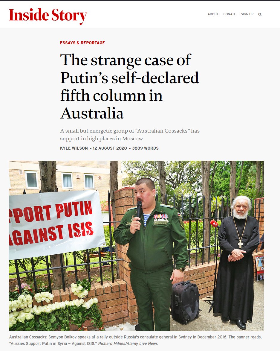 In today's #vatniksoup, I'll introduce an Australian LARPer and political commentator, Simeon "Aussie Cossack" Boikov. He's best-known for rallying neo-Nazi groups to pro-Kremlin demonstrations, for assaulting the elderly, and for hiding in the Russian consulate in Sydney.